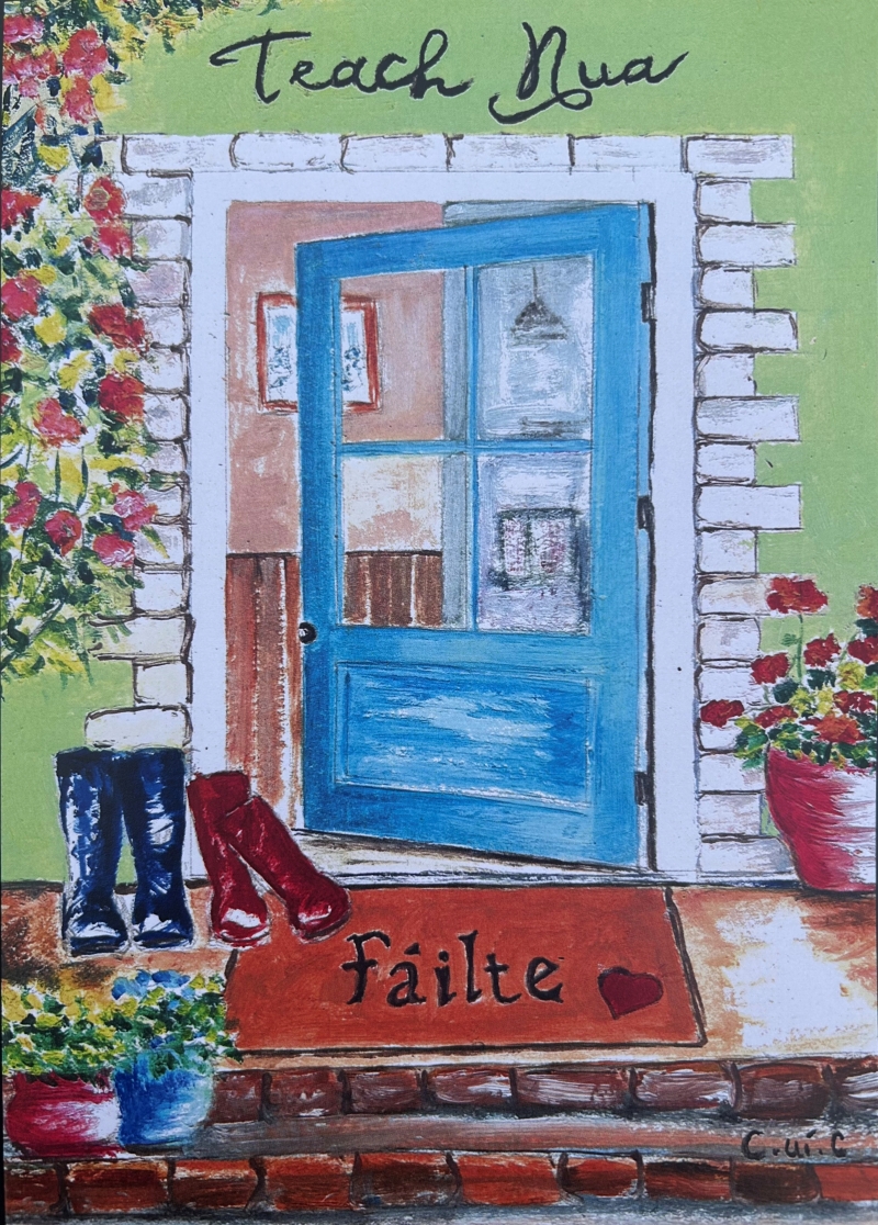 ”Teach Nua” greeting card with” New Home ” written on the back of card. All cards are left blank on inside for your own personal message.
